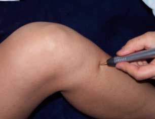 Therapie bei Kindern: Ohr Die hier dargestellte Ohrakupunktur ist eine Sonderform der Akupunktur, die mit MORA oder mit Nadeln durchgeführt werden kann. Es können besonders gut akute Erkrankungen behandelt werden, aber auch chronische Krankheiten lassen sich gut positiv beeinflussen. Eine weitere somatotope Behandlungsform ist die Schädelakupunktur nach Yamamoto, die auch in dieser Praxis praktiziert wird. Hierüber lassen sich besonders effektiv neurologische Störungen bis hin zu Lähmungen beeinflussen. |